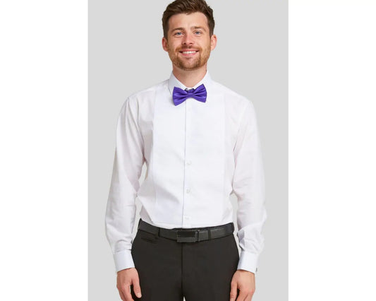 DOUBLE TWO Pleated Stitch Front Dress Shirt - Double Cuff Wing Collar – White