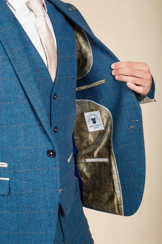 MARC DARCY Dion Three Piece Suit - Blue Tweed Check