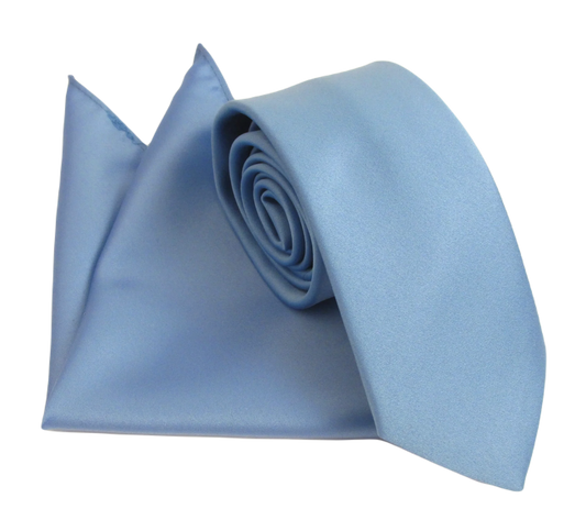 VAN BUCK Satin Wedding Tie & Pocket Square - Cornflower Blue