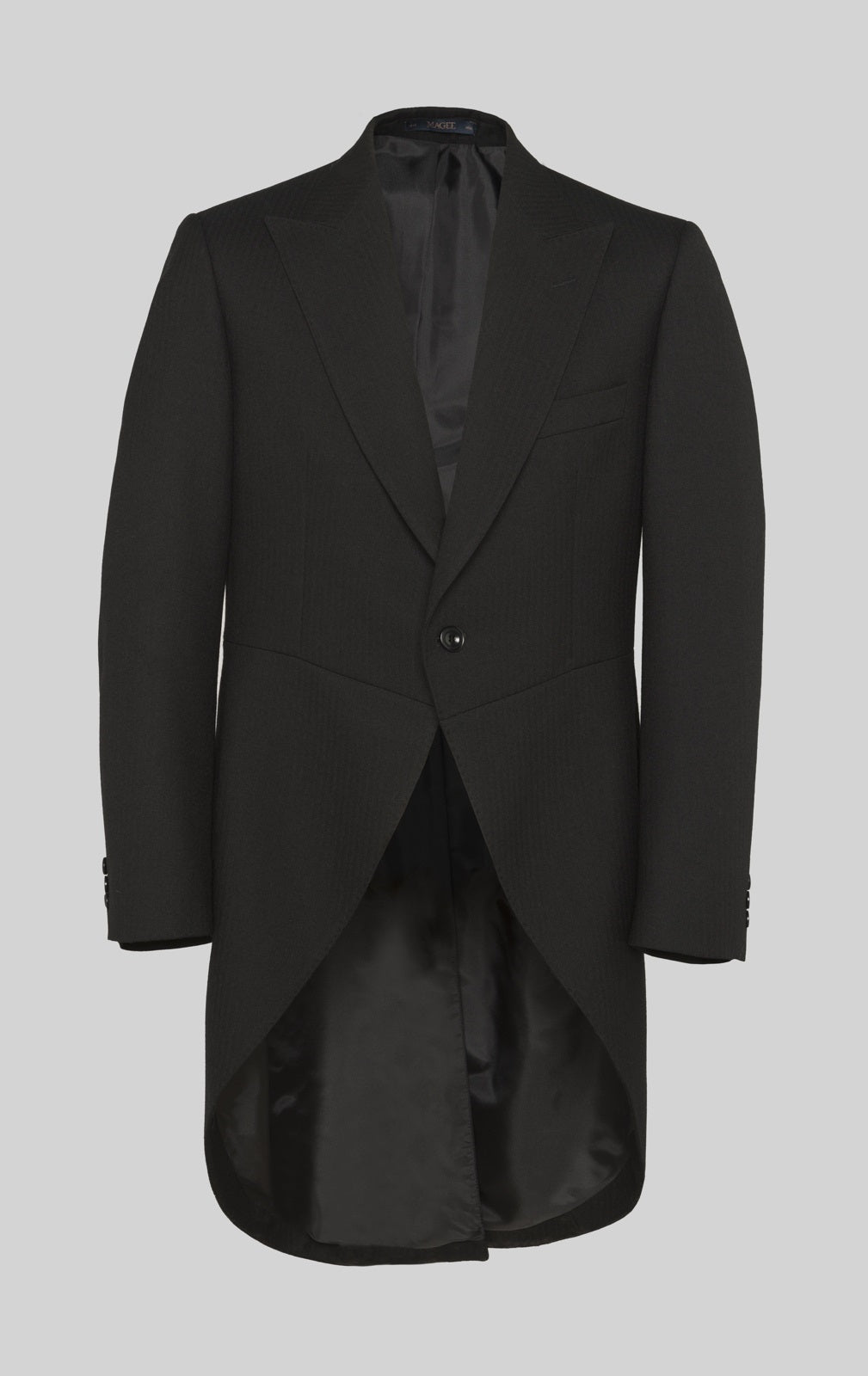 MAGEE Morning Coat Jacket - Classic Herringbone Tails - Black