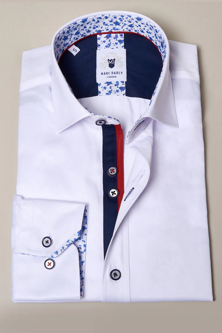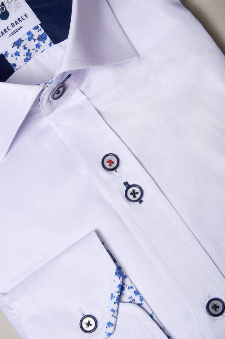 The Marc Darcy Alfie classic white shirt is the perfect balance between practical and distinctive. The floral detailing to the button trail, inner collar and cuffs gives it that charchter and the cotton blend fabric will keep you comfortable throught the day. Whether its office wear or wedding attire, this shirt ticks all the boxes.