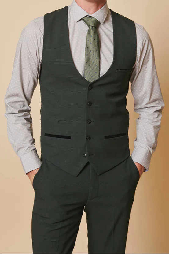 MARC DARCY Bromley Three Piece Suit - Olive Green Check