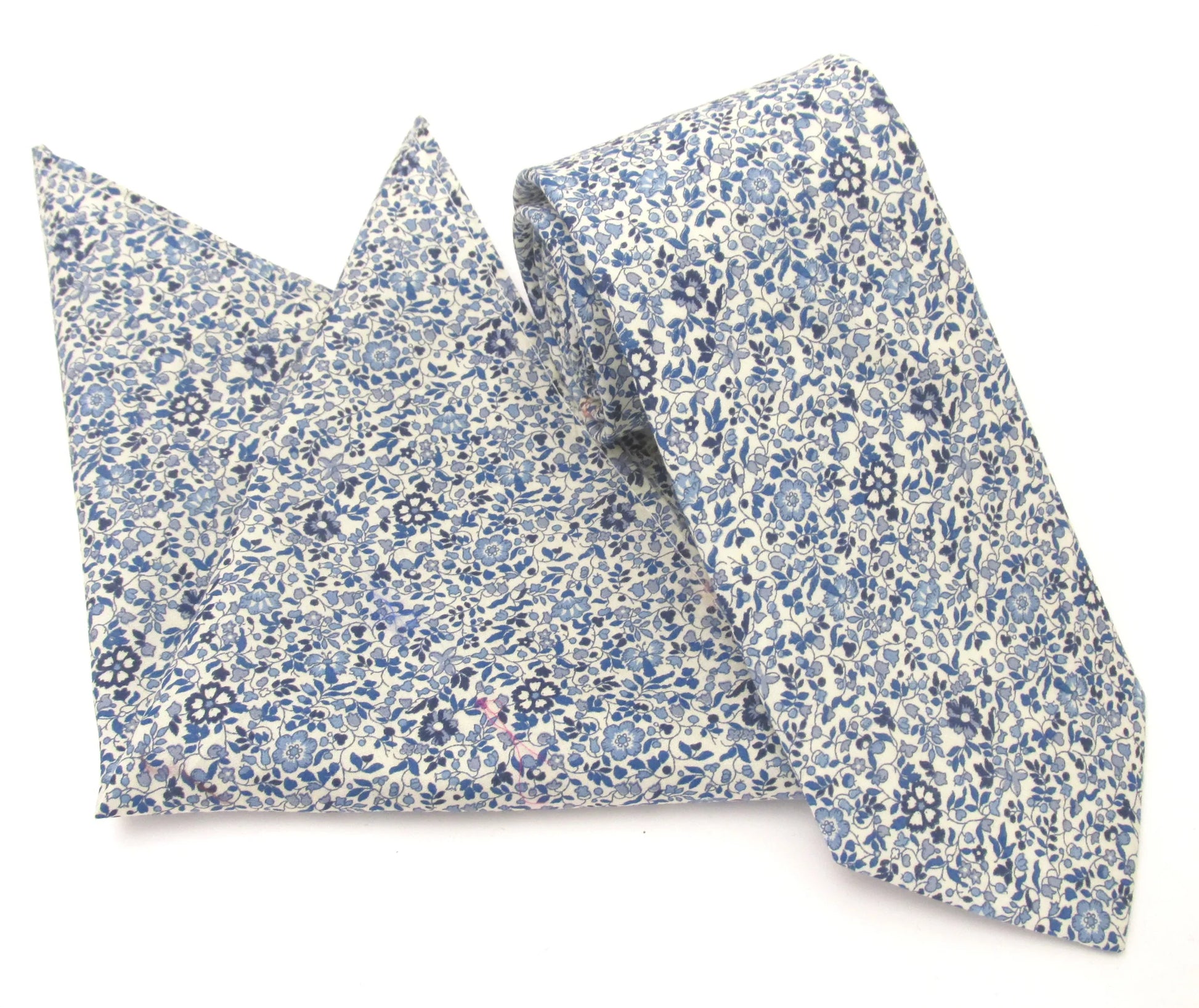 VAN BUCK Liberty Print Cotton Tie & Pocket Square - Katie & Millie Blue