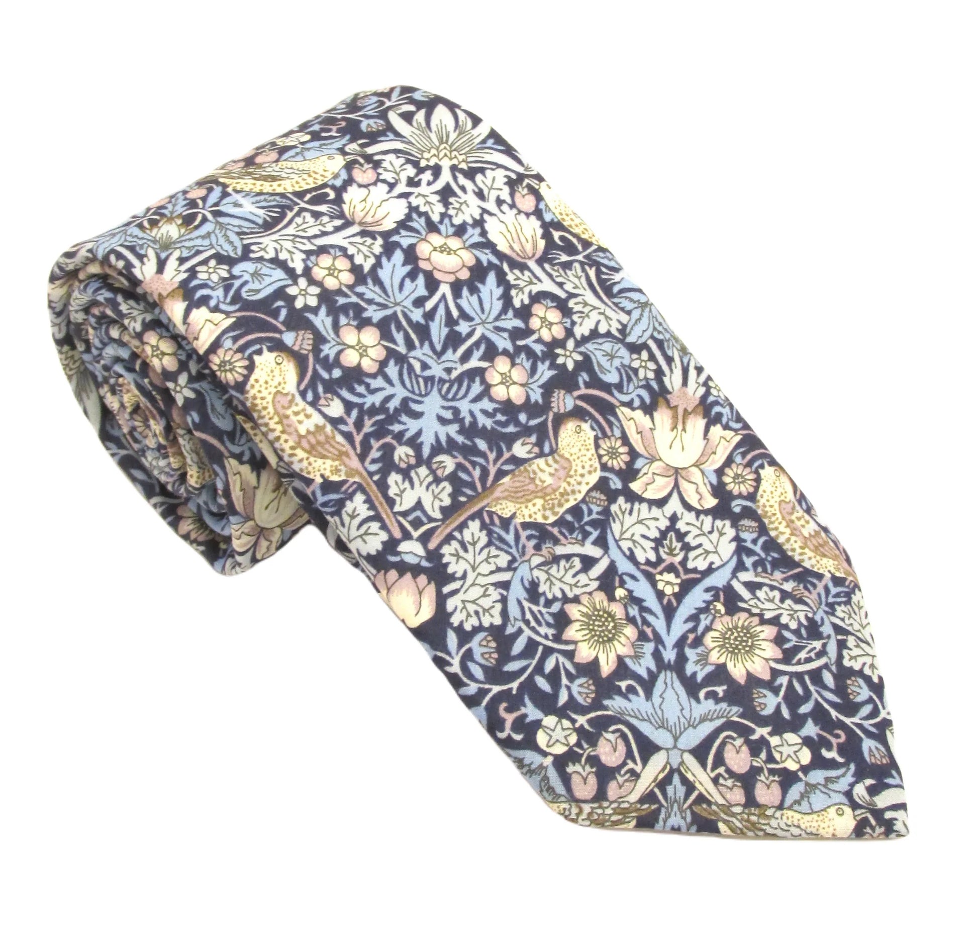VAN BUCK Liberty Print Cotton Tie - Strawberry Thief Blue