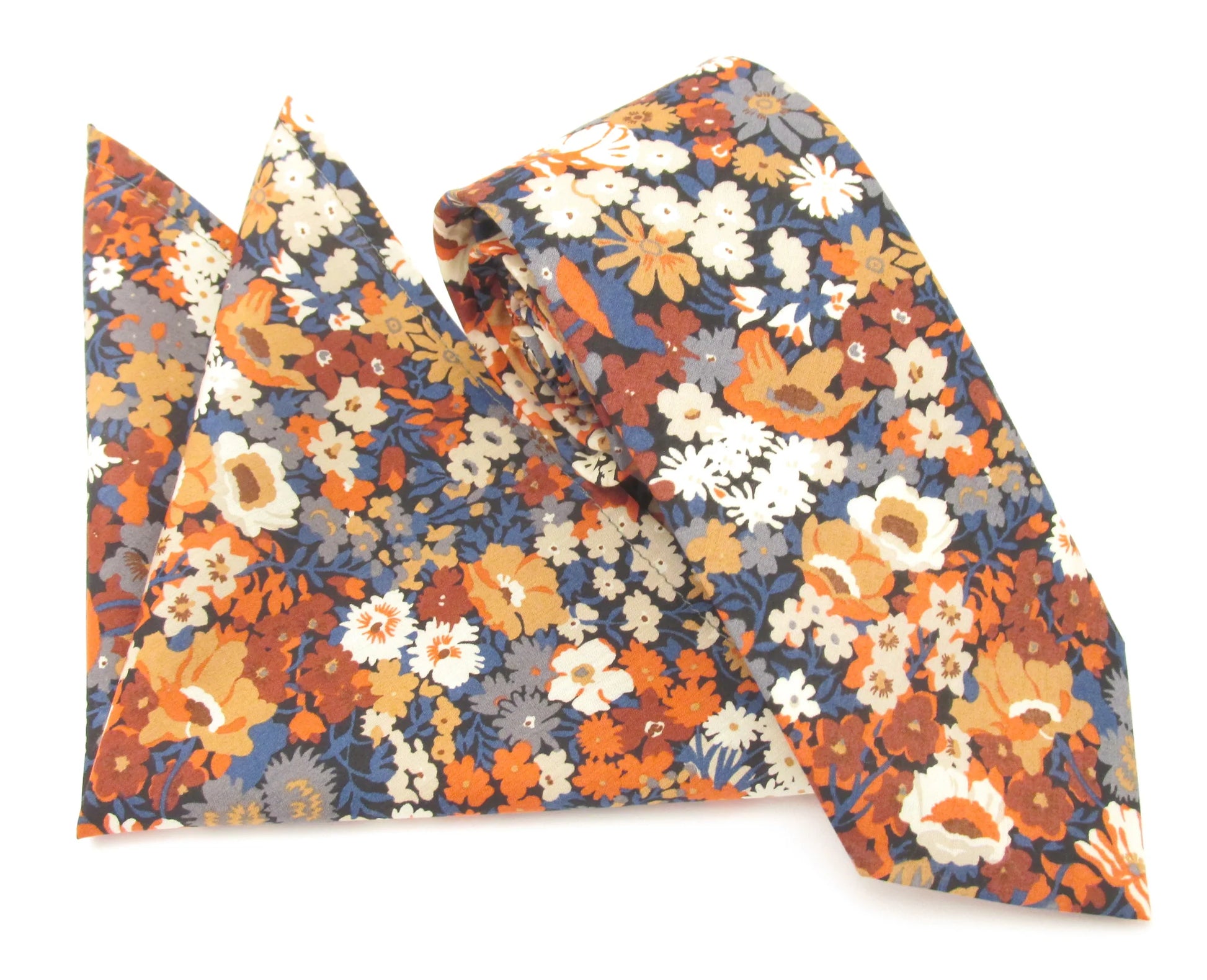 VAN BUCK Liberty Print Cotton Tie & Pocket Square - Thorpe Orange